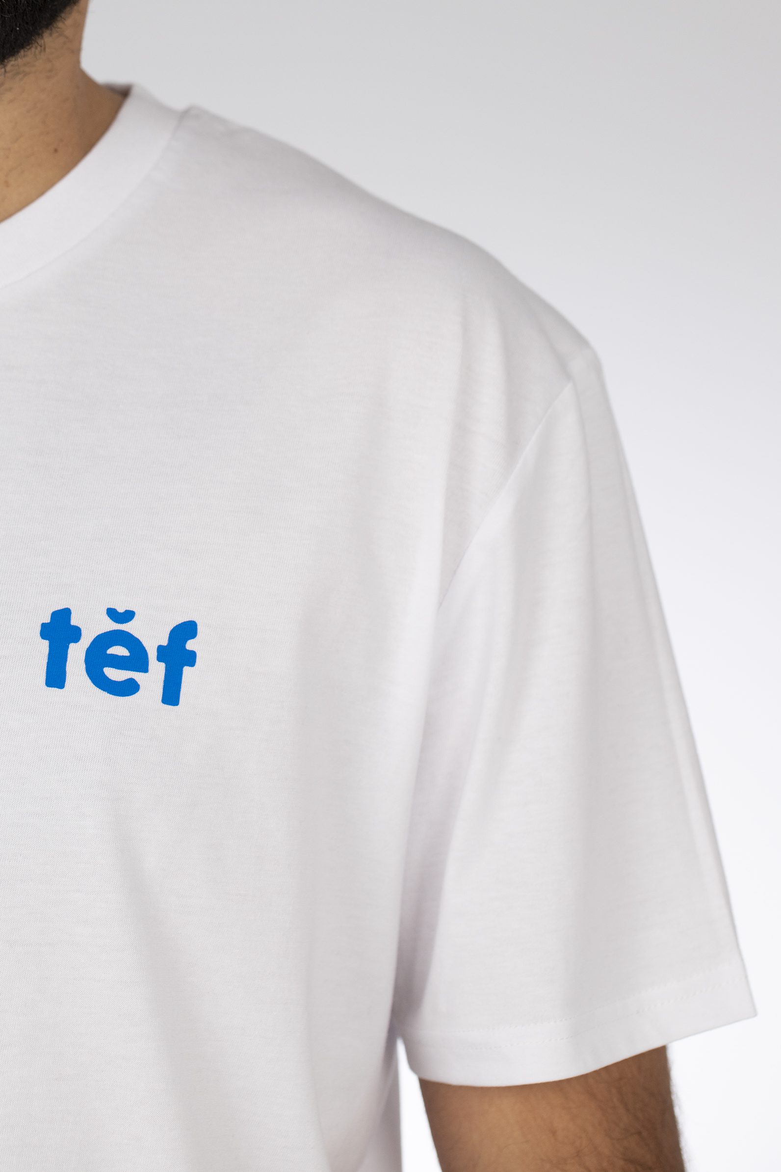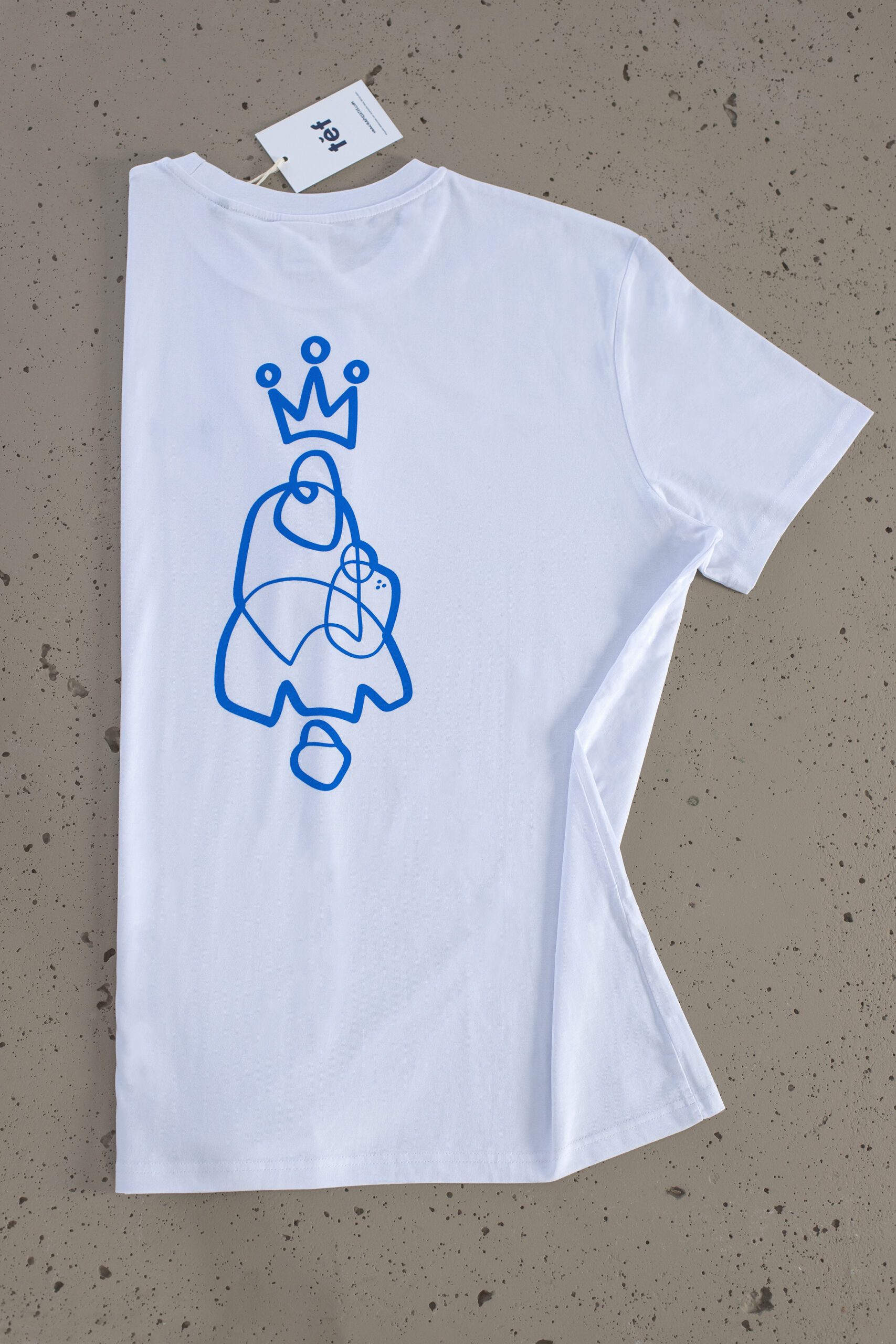 El color preferido del Largo es el azul, el azul de tus ojos. Ha elegido una camiseta blanca con un estampación azul con su cara en la parte trasera y en el pecho el logo de tef.