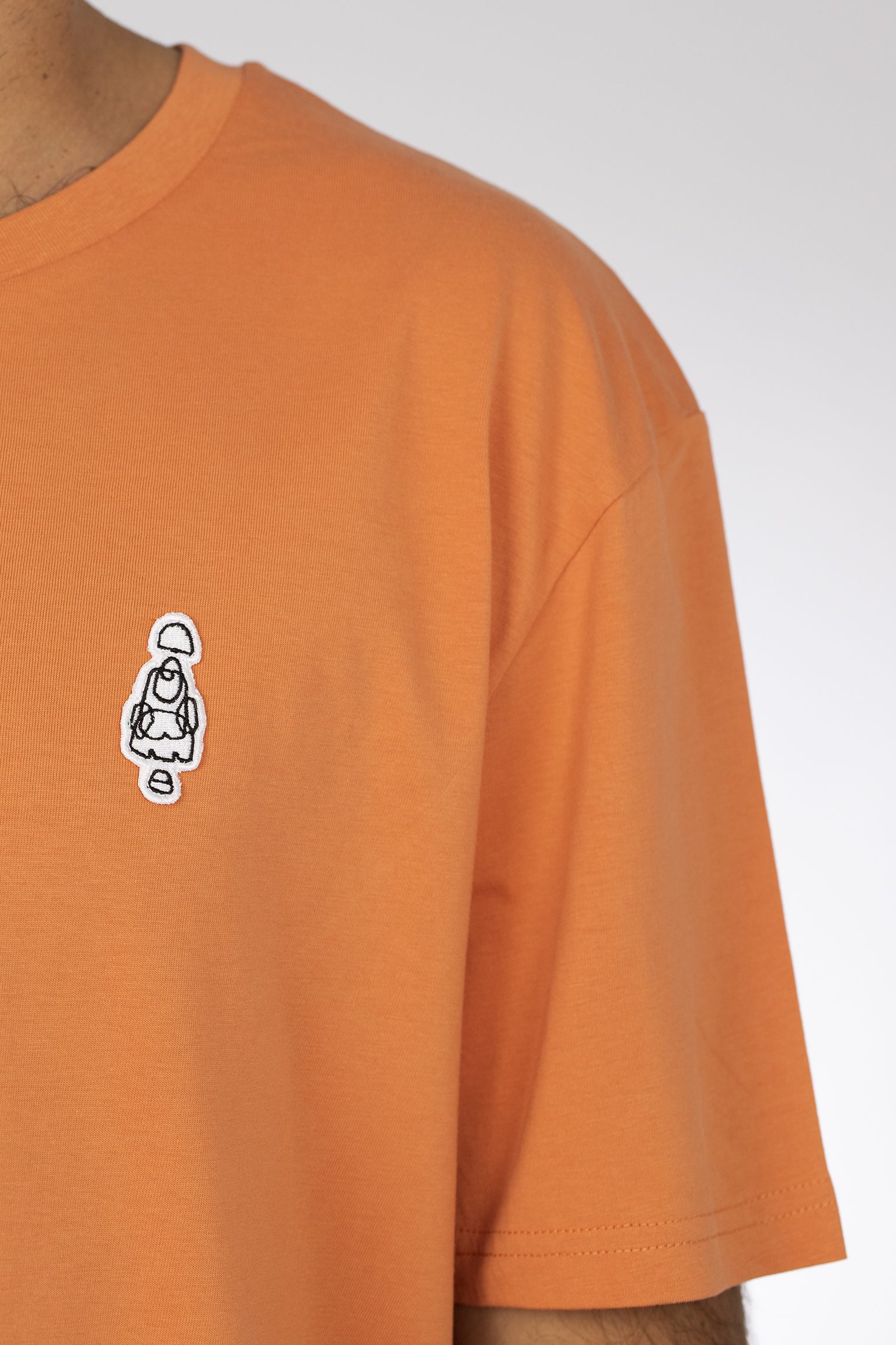 Camiseta naranja de algodón 100% orgánico hilado y peinado de 180gr. El parche y el bordado están elaborados 100% en España.